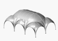 Durch die Kombination verschiedener Pavillons ist ein individueller Grundriss im 3-Meter-Raster möglich. Die Zeltwände sind flexibel einsetzbar und können bei Bedarf (z.B. bei Gewitter, Regen, Sonne o.ä.) kurzfristig eingesetzt bzw. entfernt werden